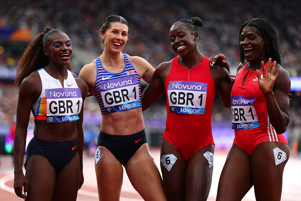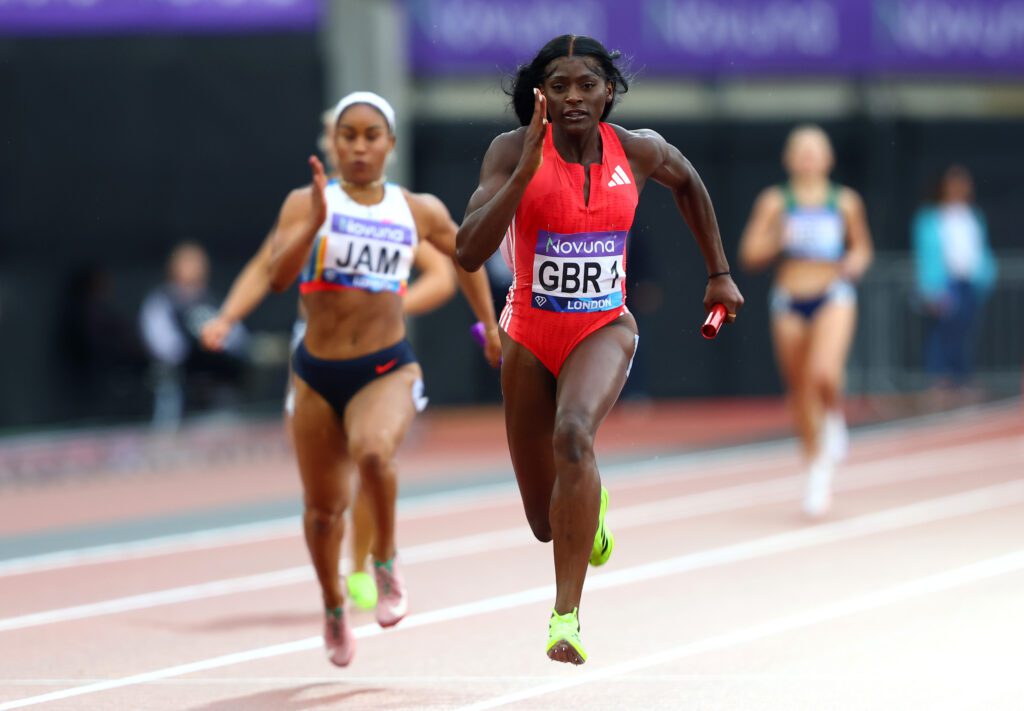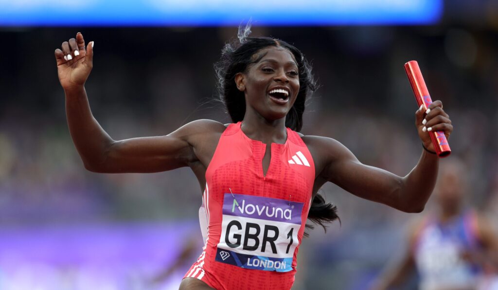 Having watched their male counterparts finish second to Jamaica in a season’s best time of 38.08 moments earlier, the quartet – with the backing of a capacity crowd of 60,000 – raced to victory in 41.69, the third-fastest time ever by a Great Britain and Northern Ireland women’s team and only marginally short of the 41.55 national record set at the Olympic Games in Tokyo (2021).